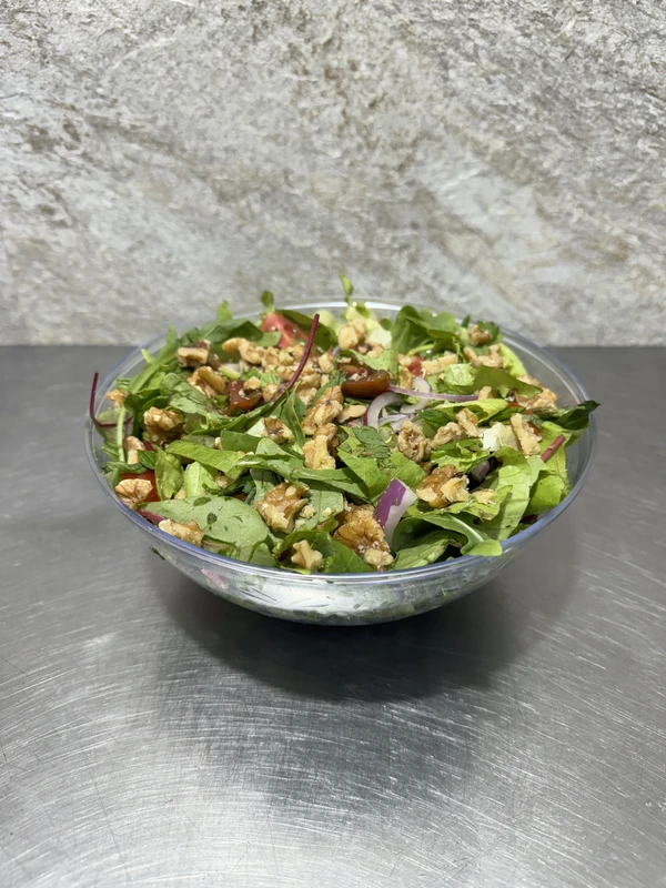 חסה,רוקט,עלי נענע,עגבניות שרי,בצל סגול ואגוזי מלך